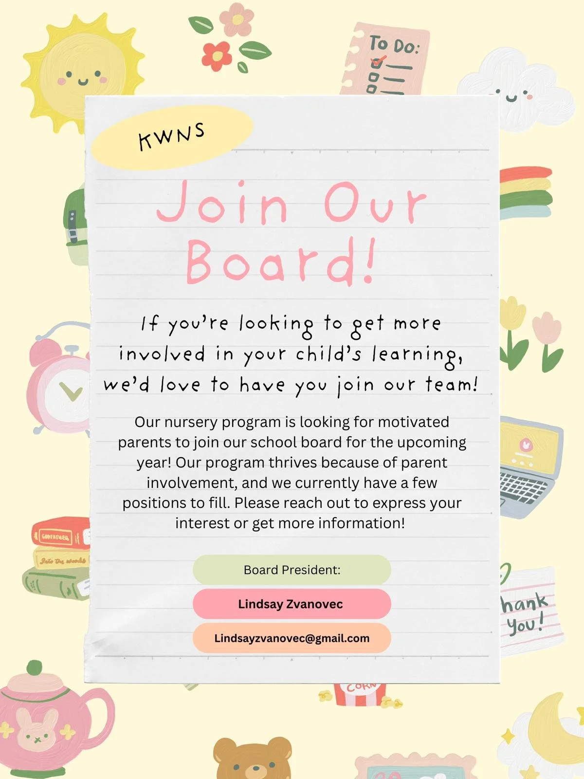 Inspiring lifelong learners through play-based early childhood programs designed to spark creativity, confidence, and a love of discovery. Kirkfield Westwood provides enriching pre-school programs for 3 and 4 year old children. Our programs allow children to develop cognitive, language, social, emotional, life skills through a variety of individual and group activities. Kirkfield Westwood is a non-profit organization that is overseen by a board of volunteer parents and nursery school staff. Scroll down to see what our space looks like, or to contact the staff.